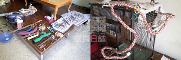 這次比之前更覺得滿意,籠內感覺更豐富了,這樣我上班時阿波有更多東西可以打發時間